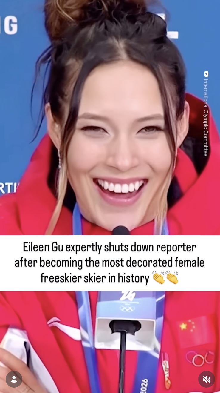When asked by a reporter if Olympian Eileen Gu felt as if her two silver medals were instead two gold medals lost, she reframed the question. Whether you agree with her response or not, it’s a lesson in taking control of the narrative. Watch it here.