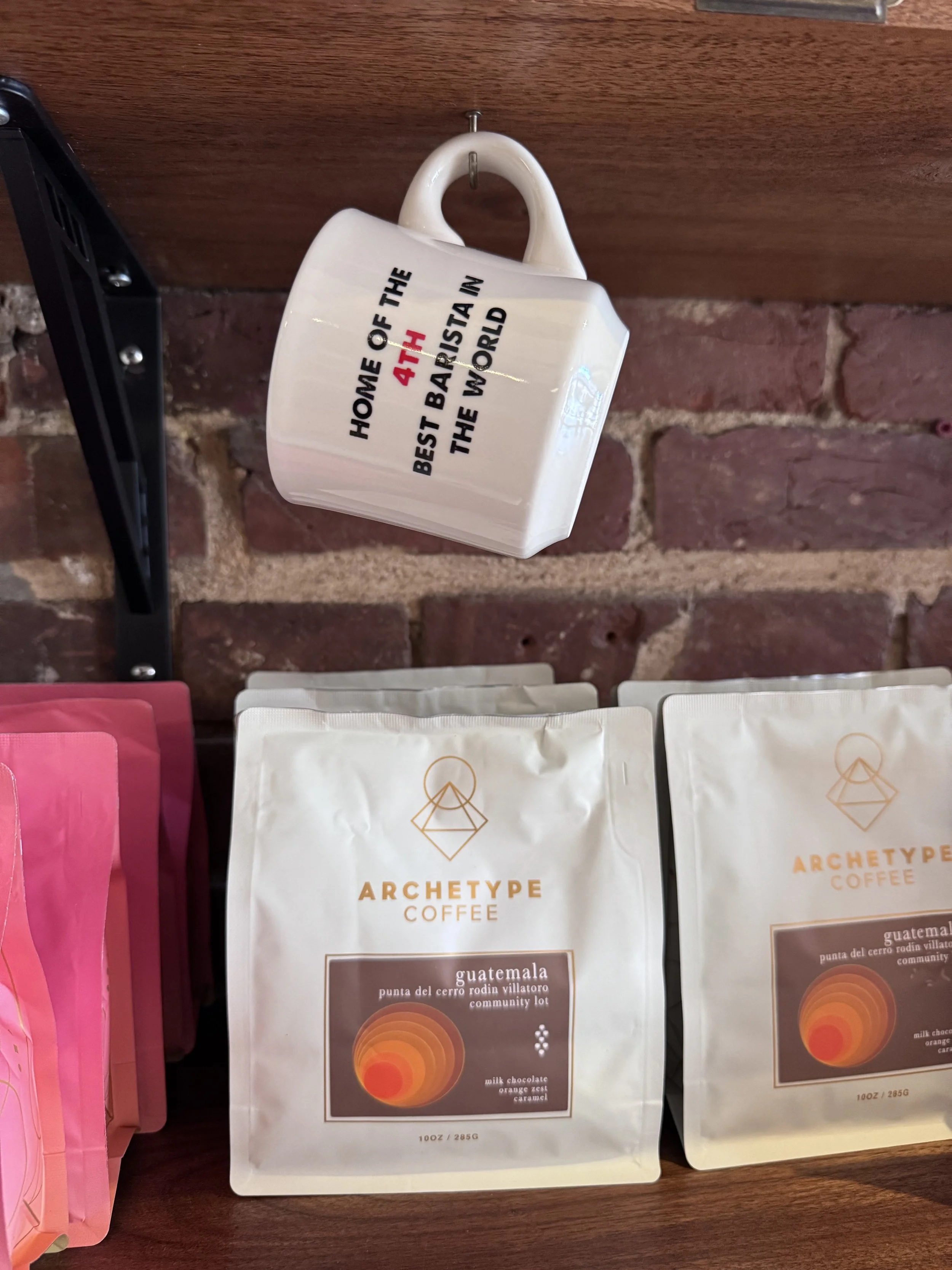 While visiting Omaha’s Archetype Coffee, we spotted this mug declaring them the home of the fourth-best barista in the world.