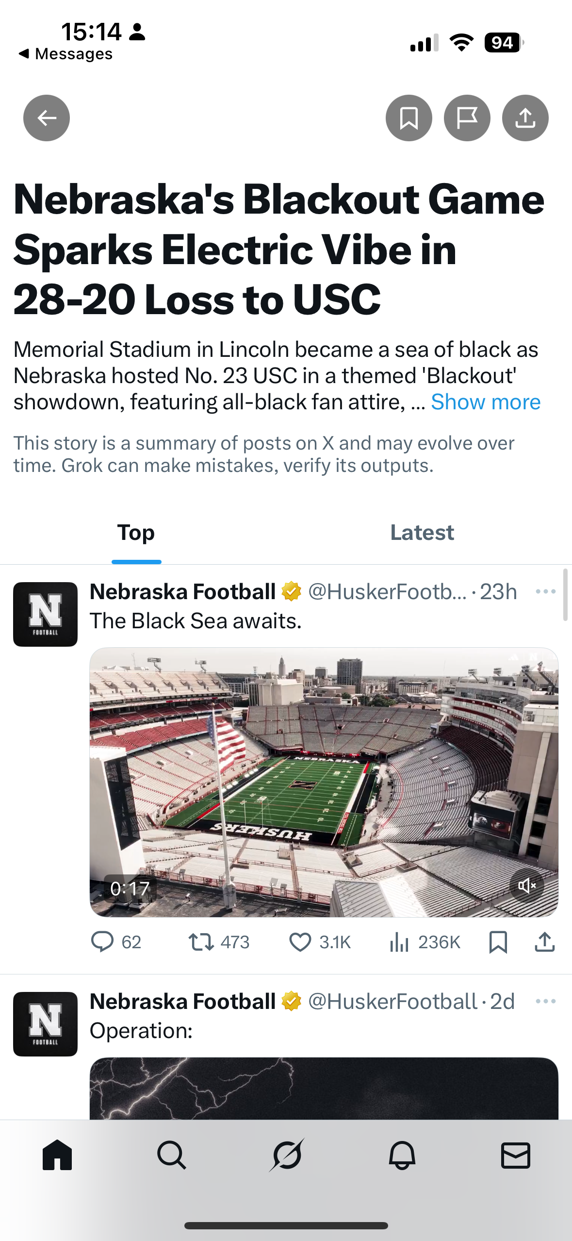Here’s a snapshot of an AI-generated summary from Grok on X about the Husker/USC football game. Whether or not you follow sports – or notice the incorrect score – isn’t the real issue. It’s that the summary was posted four hours before the game even started.