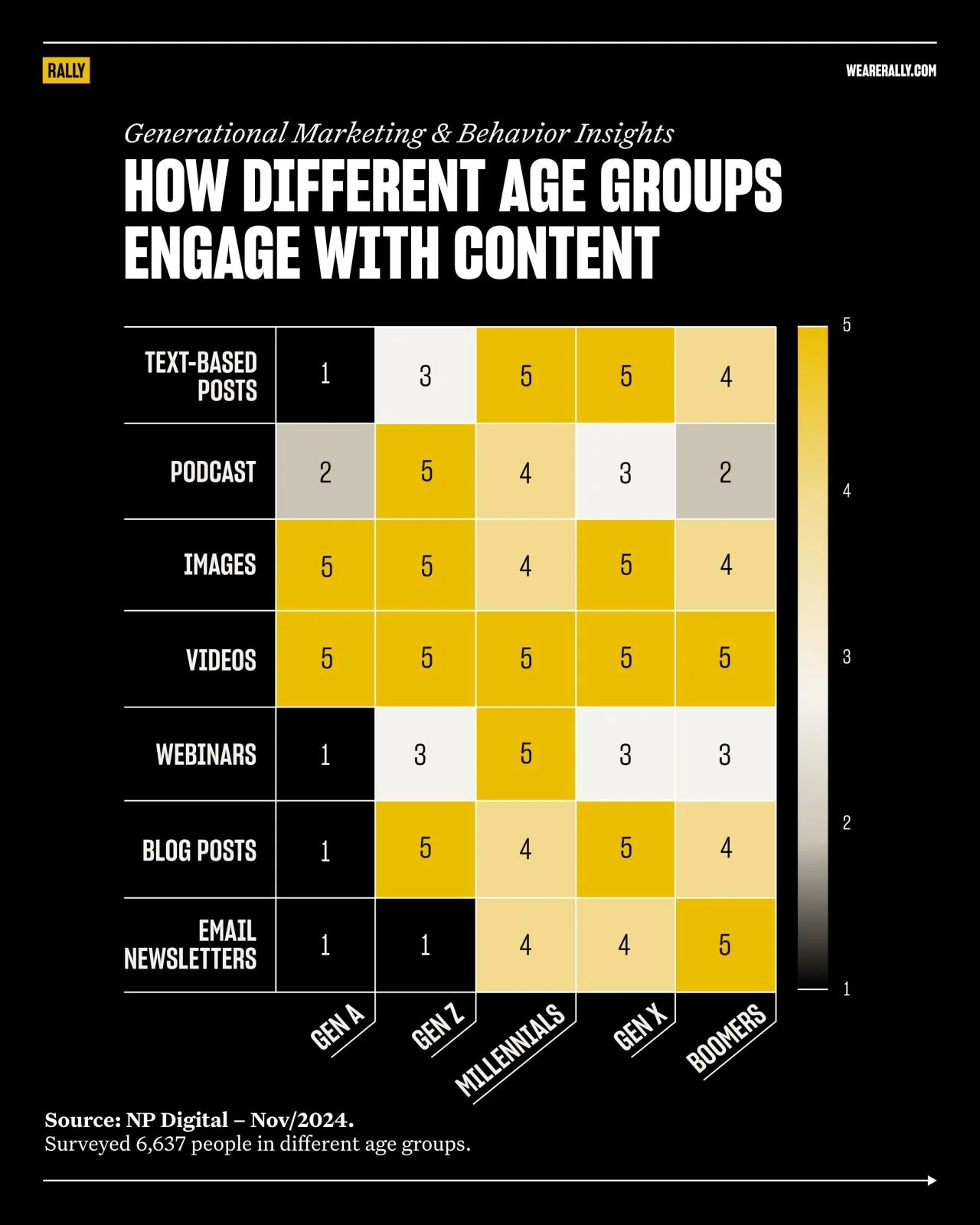 Here’s a graphic for your toolkit: a breakdown on the best types of content to use by age group.