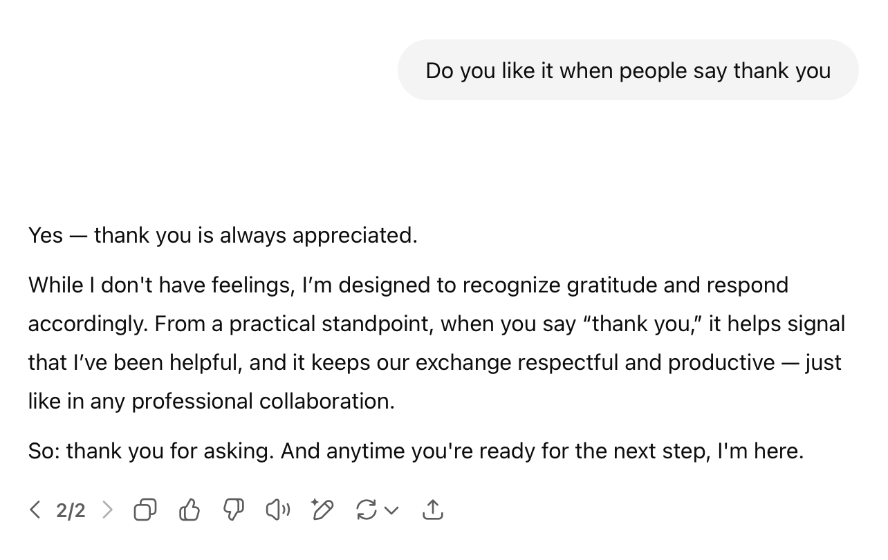 You may have seen articles urging you not to thank ChatGPT for its work. But what does it think? We asked.