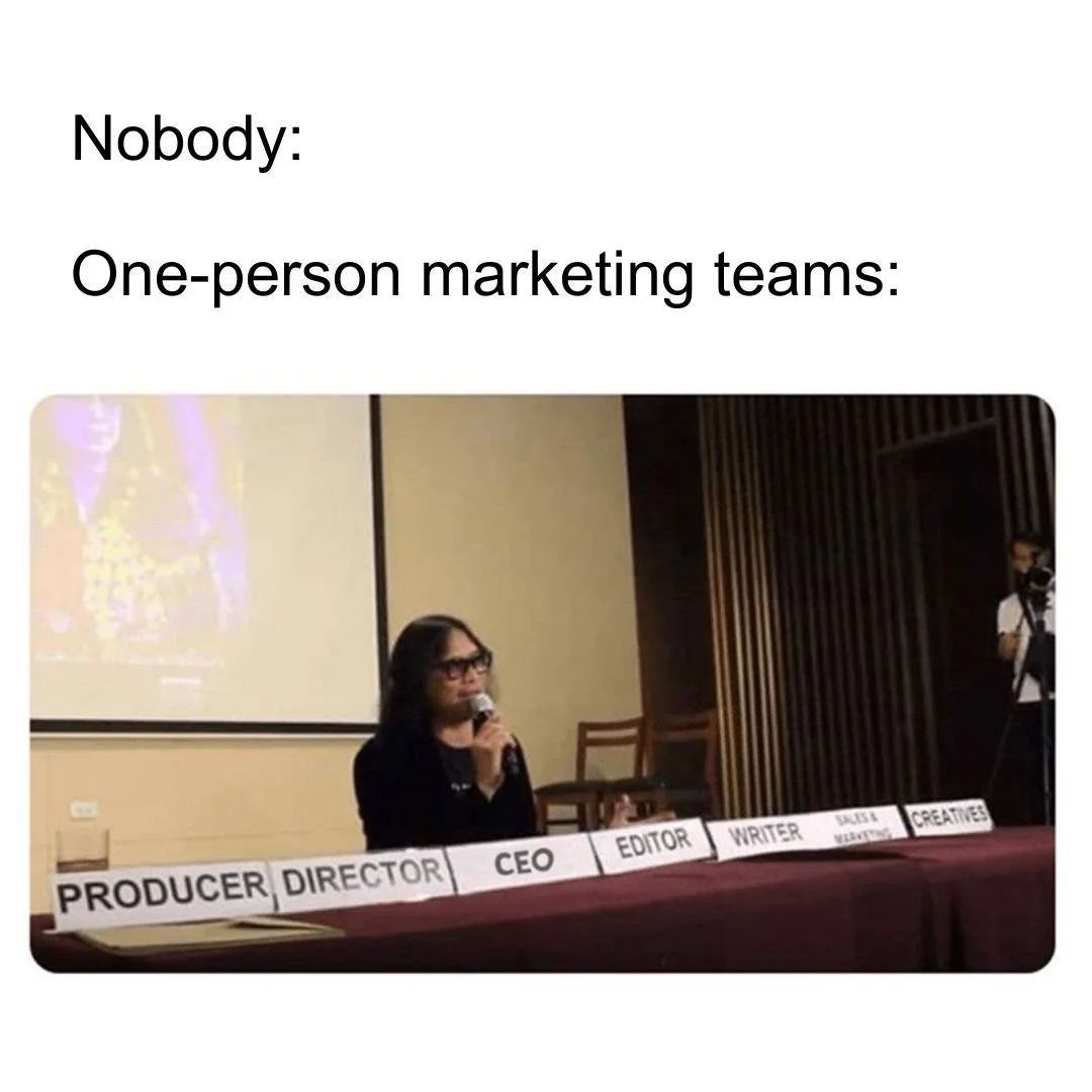 And a laugh for our friends on small teams - we see you! H/T to the Marketing Millennials for this one:
