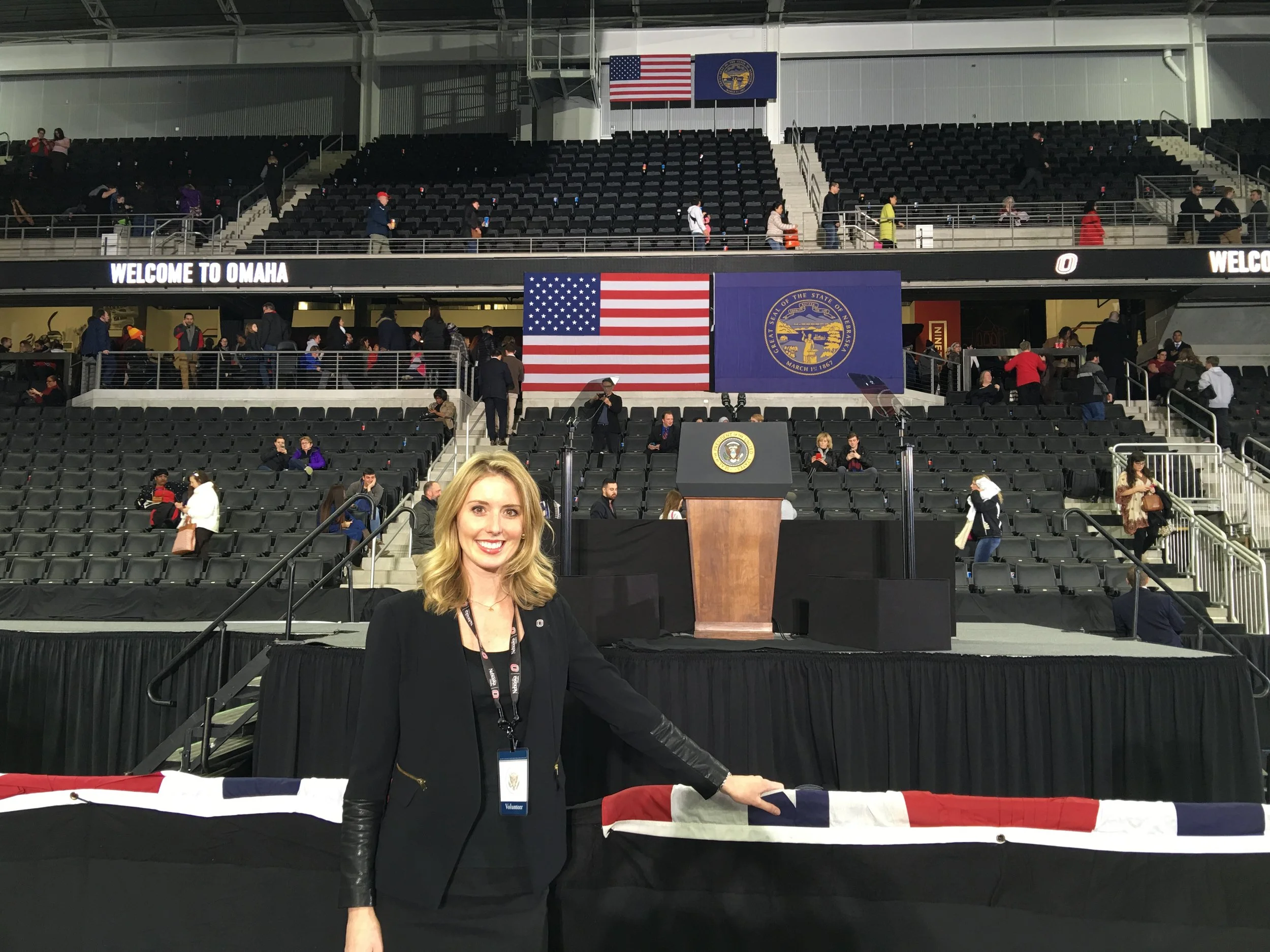 Poeschl at President Barack Obama’s visit to the University of Nebraska at Omaha.