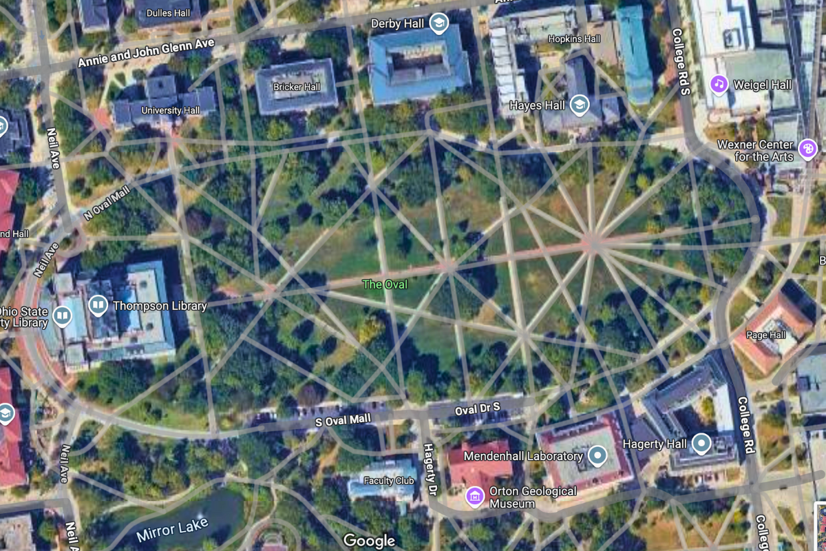 If you look at an aerial view of Ohio State University, you’ll notice something unusual: a series of seemingly random sidewalks crisscrossing the main commons. But here’s the thing—they’re not random at all.